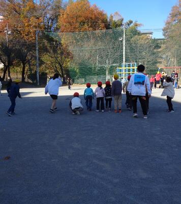 12月12日のロング昼休みは、1年生から6年生のたてわり班で遊ぶ「〇遊(まるゆう)デー」でした。