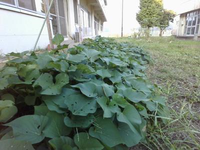 サツマイモ畑 投稿: 先生 (2021/09/24) 校舎と体育館の間にある一色小学校の畑です。 6月にみんなで苗を植えたサツマイモ。 葉っぱがこんなにたくさん! 収穫が楽しみです。焼き芋ができるといいな〜。