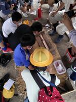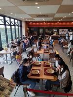 昼食では特別メニューのカレーライスを食べ放題でいただきました。一色小学校のみんなが来てくれると聞いたレストランの方々が、何と10キロのお米を炊いて待っていてくれたそうです! 蛇口から出てくるみかんジュースもいただきました。